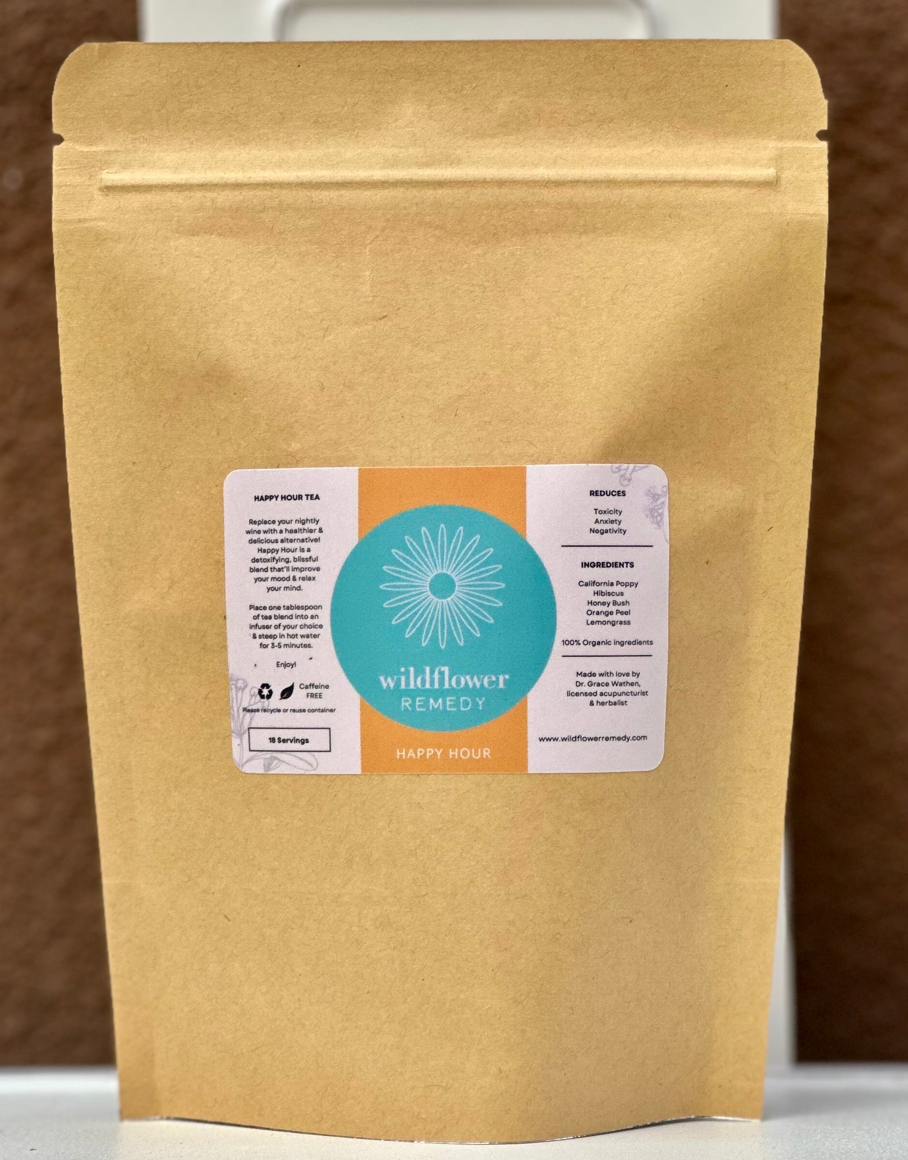 Ingredients: Organic California Poppy, Organic Hibiscus, Organic Honey Bush, Organic Orange Peel, & Organic Lemongrass